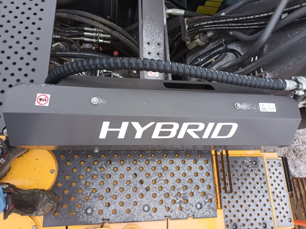 Koparka posiada system Hybrid co pozwala zaoszczędzić 2l paliwa /h . Jest możliwość wyłączenia z pozycji panelu .